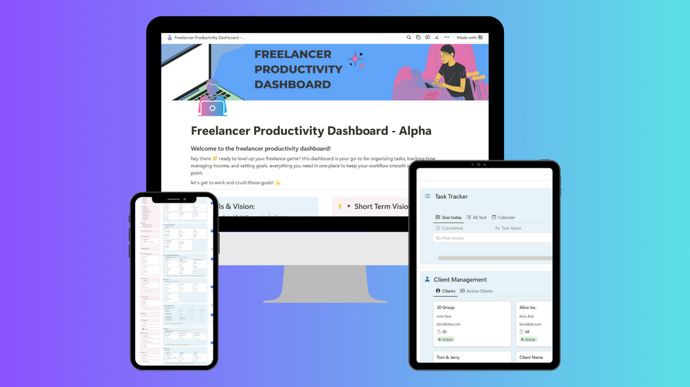 Grab your Freelancer Productivity Dashboard now and boost your productivity!